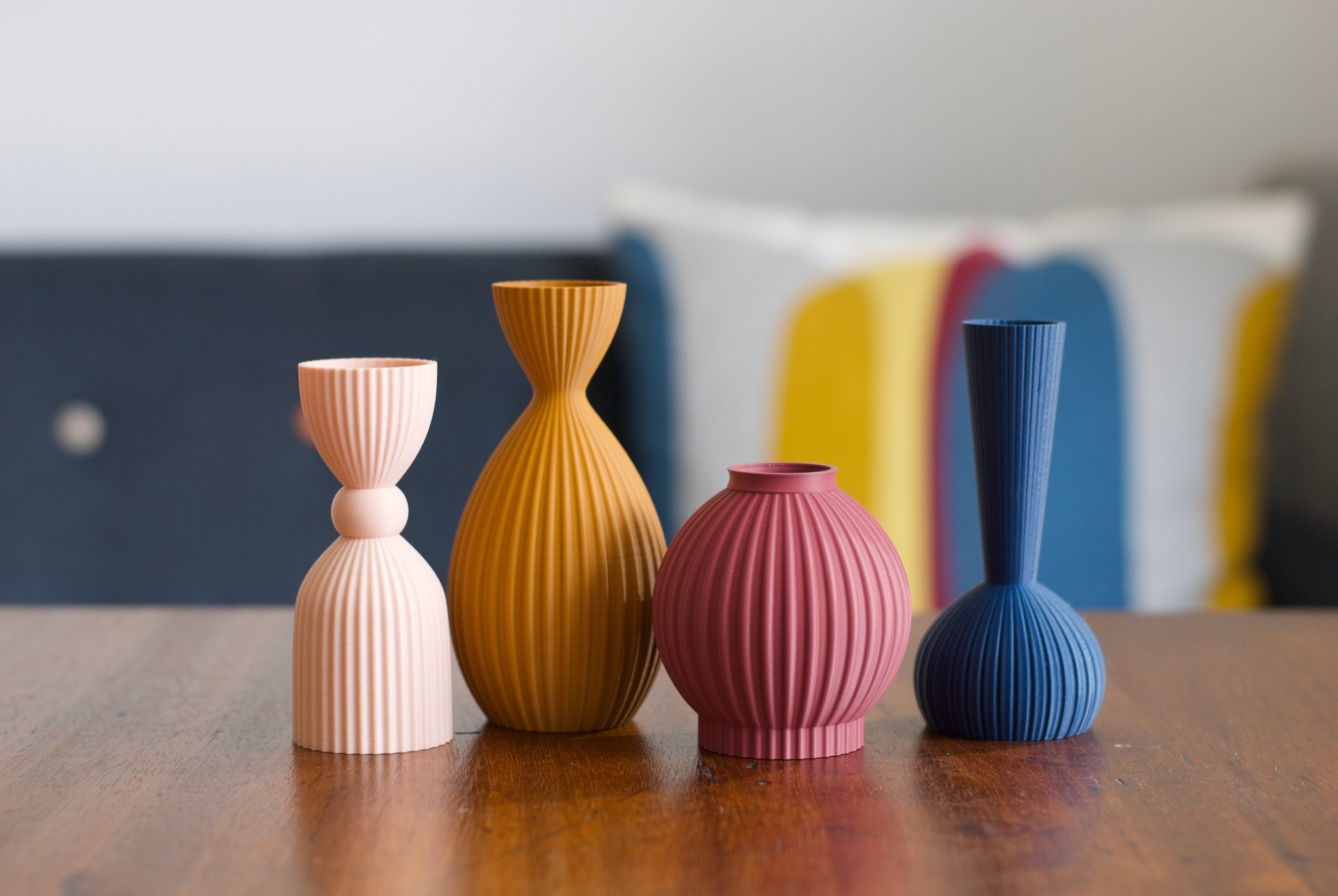 I am a designer maker, design consultant, and product designer with over 25 years of experience within the Ceramic Industry. This βhello beautifulβ collection began in 2020 during the lockdown. I started to explore digital design technology to create my forms which are then 3D printed in my studio. Each design begins with a sketch followed by a digitally crafted 3D file. After many years of designing for some of the worldβs most recognisable ceramic and homeware brands, Iβm enjoying developing my own aesthetic, inspired by my love for mid-century design blended with classic silhouettes and geometry found in nature. Forms are ribbed, faceted, and fluted, and have tactile surface finishes. The biodegradable printing filaments have their own unique qualities and the striations and marks left by the printer make each piece individual. Colours are chosen to reflect current interior trends and create complementary stories that can grow over time.